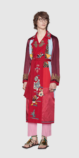 I thought this was an interesting theme to use but it is very well executed. The colours and mixtures of embroidery is what made the design really work. It’s more interesting than just Donald Duck on its own. Both use floral and fish designs for embroidery. I do like the variation of sizes and the displacement of the design around the coat and robe.