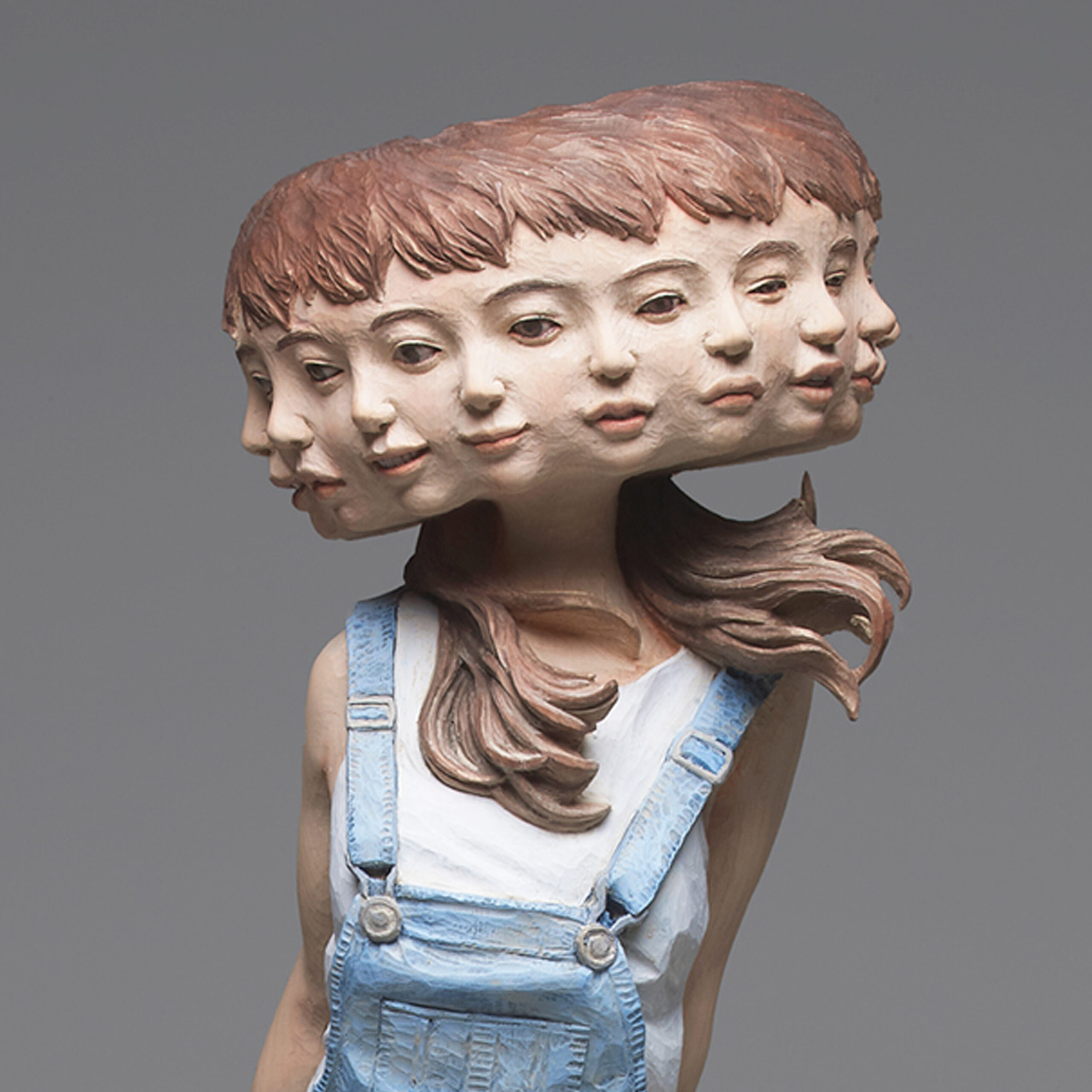 Yoshitoshi Kanemaki a Japanese based artist creates intricate wood carvings with a delicate paint finish.