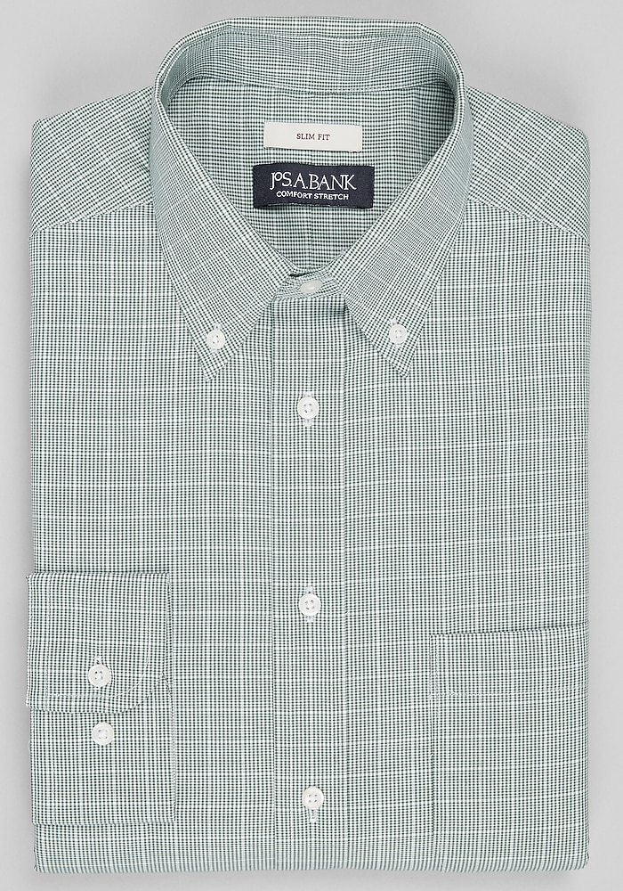 Jos. A. Bank Slim Fit Glenn Plaid Dress Shirt in Green