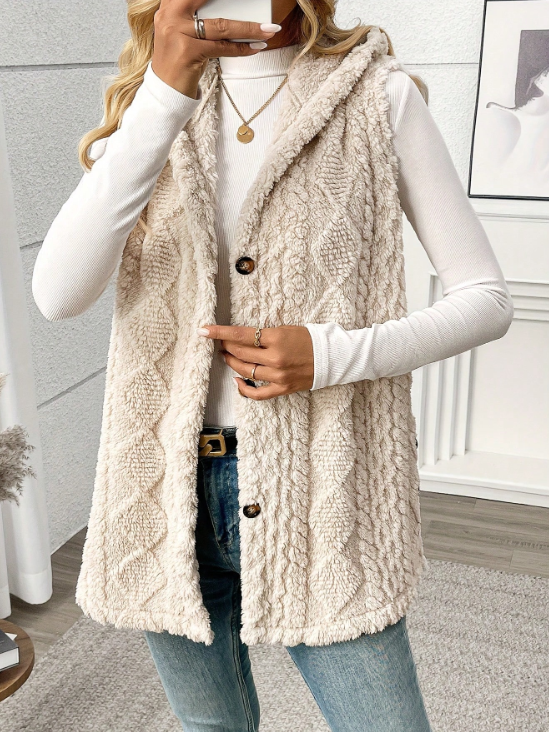 Solid Color Sleeveless Hooded Fluffy Coat For Women | $18.14