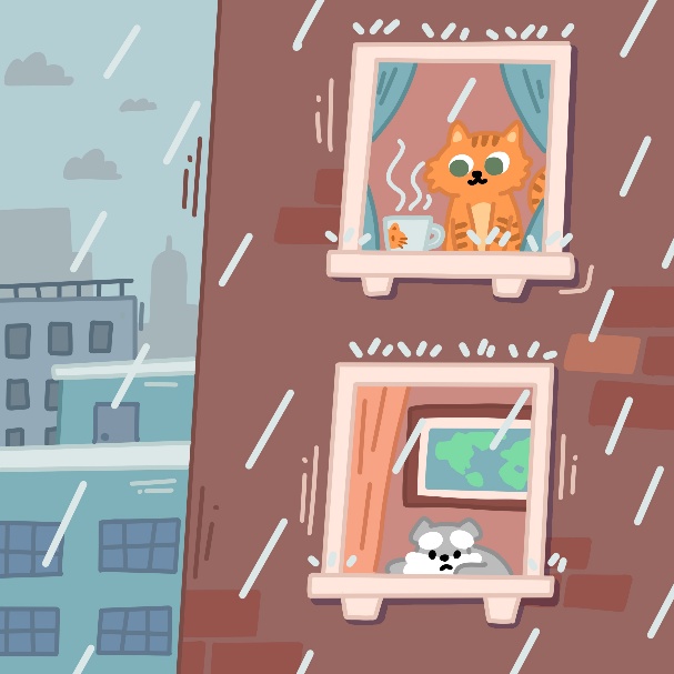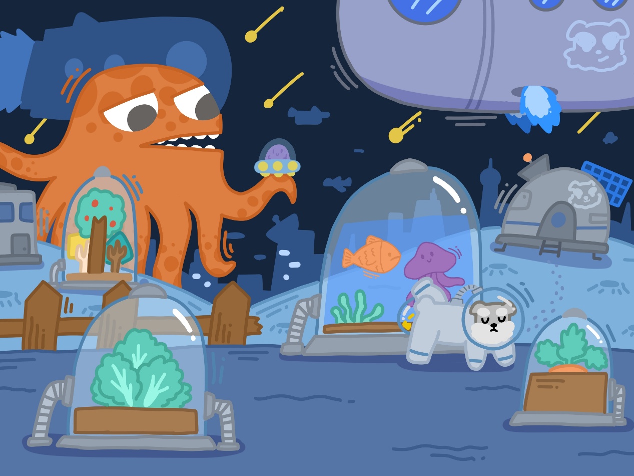The chapter titles and settings span widely: NEWYORK, Where is cowboys?, Space, along with Alaska, tropical rainforests, outer space, and a fairytale-like forest of giant mushrooms. Yiming Zhai organizes these places into an emotional map. New York points to crowding and exhaustion. The natural world corresponds to escape and breathing room. The imagined world takes on the role of an exit when reality has nowhere to place emotion. Here, place is not a geographic coordinate but a visual partition of emotional states.