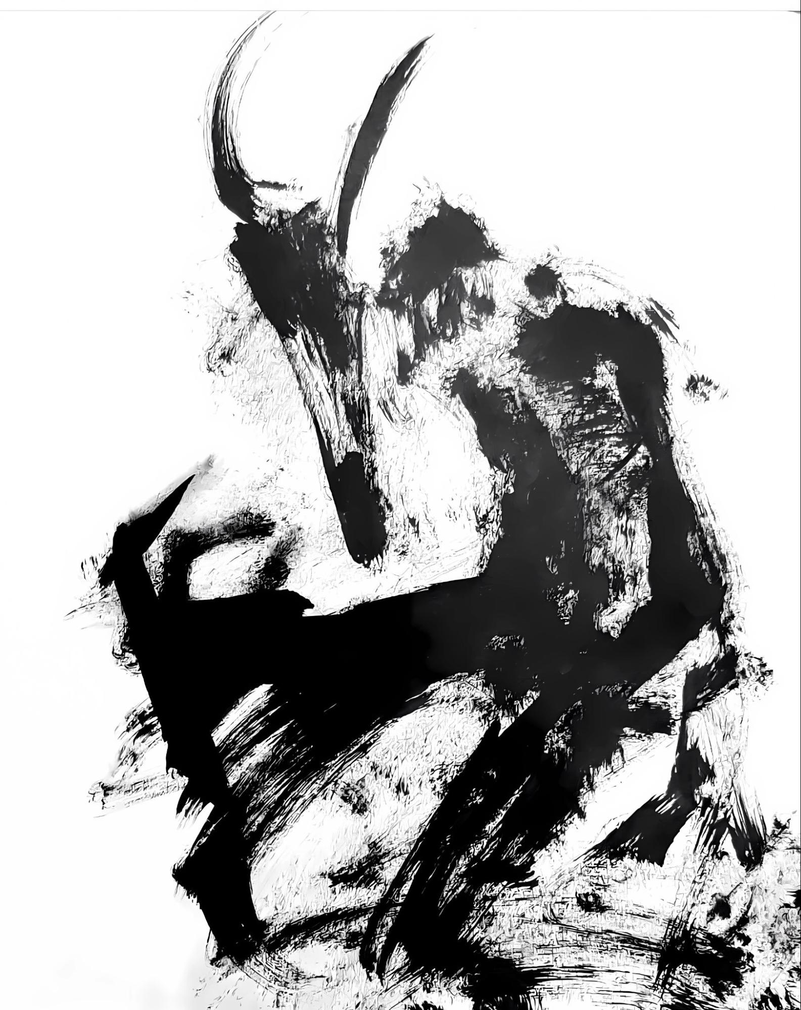 In Daemon, the darkness reaches a peak. It is where the lines come together to form a shape that is not strictly representationa l – the abstraction of a figure that is screaming in agony. The surface has a textured quality that is close to being abrasive. This is not an illustration of a creature, but a visualisation of inner conflict made external. The weight of the brushwork produces a sensation of compression, as if the image itself were struggling to breathe.