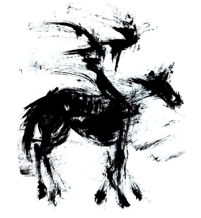 Storm Within turns the energy inside. The raising horse is not the symbol of power, but the response to the pressure that is building. The dry brushstroke breaks the body down into oscillating marks, implying volatility and discharge. The figure is clearly caught between falling apart and blowing its top.