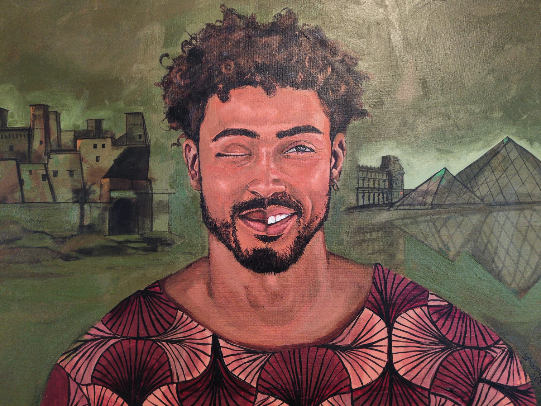 We see a similar story of dual identities play out in the painting ‘Morrocan’. On one side is his Moroccan hometown, and Le Louvre on the other, as he has travelled to Paris for financial opportunities. It’s that delicate balance of remembering one culture, while assimilating another, and many of us feel like we can never fully fit into either, becoming what are referred to as ‘third culture kids’.