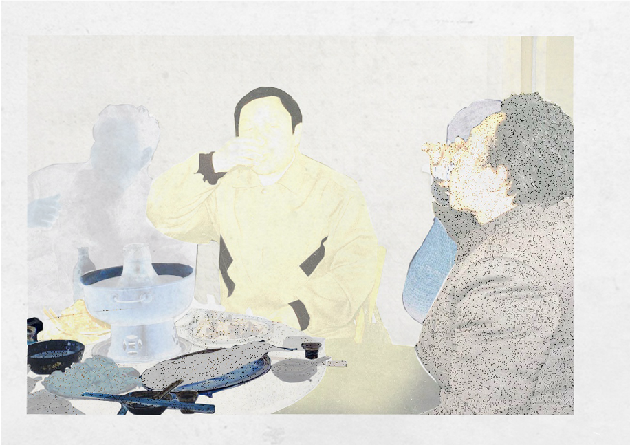 In Linkage 1, Liu begins with a photograph of a family gathered around a dining table. What once suggested warmth and intimacy is gradually unsettled. Faces stretch and drift apart, while the table, a symbol of cohesion, loses its structural clarity. The image no longer affirms harmony, but exposes an underlying fragility embedded within the scene.