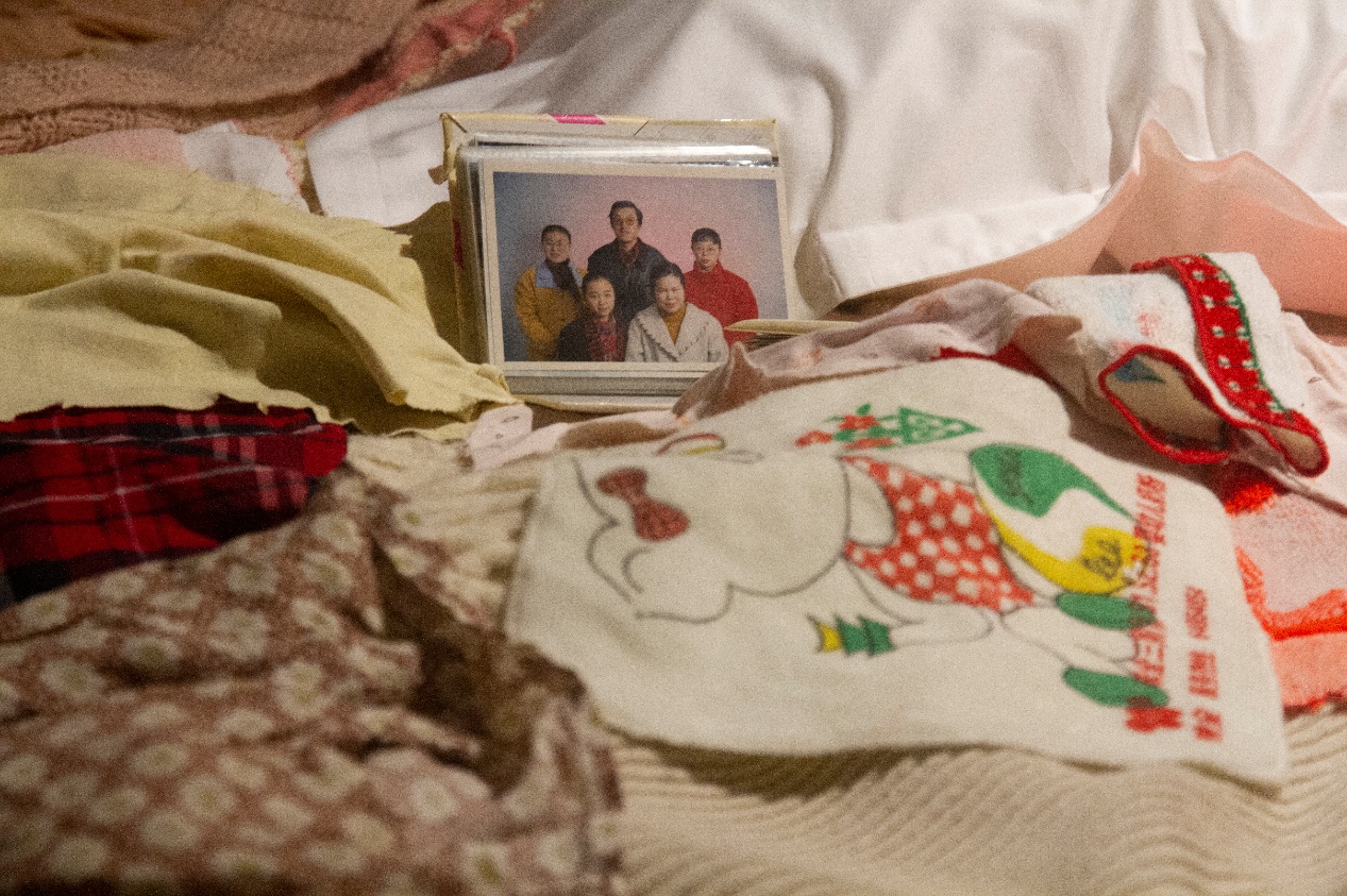 Returning to her hometown, Liu collected personal belongings and family photographs, scanning and collaging them into textile prints. Touch becomes crucial in this process. Handling garments once worn by relatives introduces a bodily form of remembrance that compensates for emotional distance. The resulting images resemble afterimages, faded, fragmented, and uneven, as though time itself had interfered with their clarity.