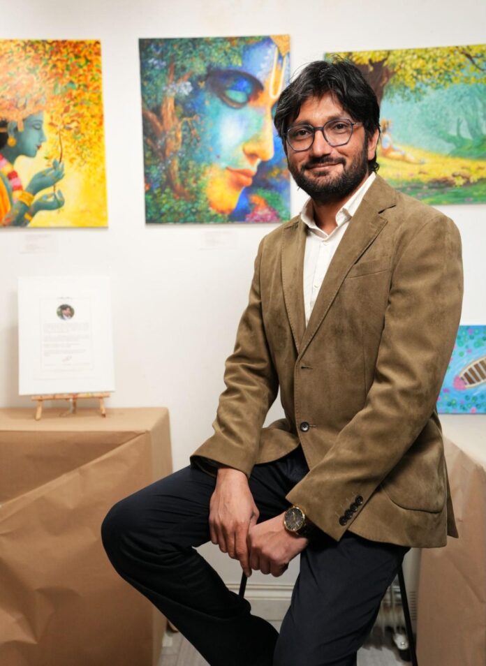 While in Western art history, this often takes the form of the Gods of Ancient Rome and Greece, followed by representations of Christianity, the art of Pareshkumar Kakadiya offers a different perspective we don’t often see in the UK – that of the spiritual side of Hinduism.