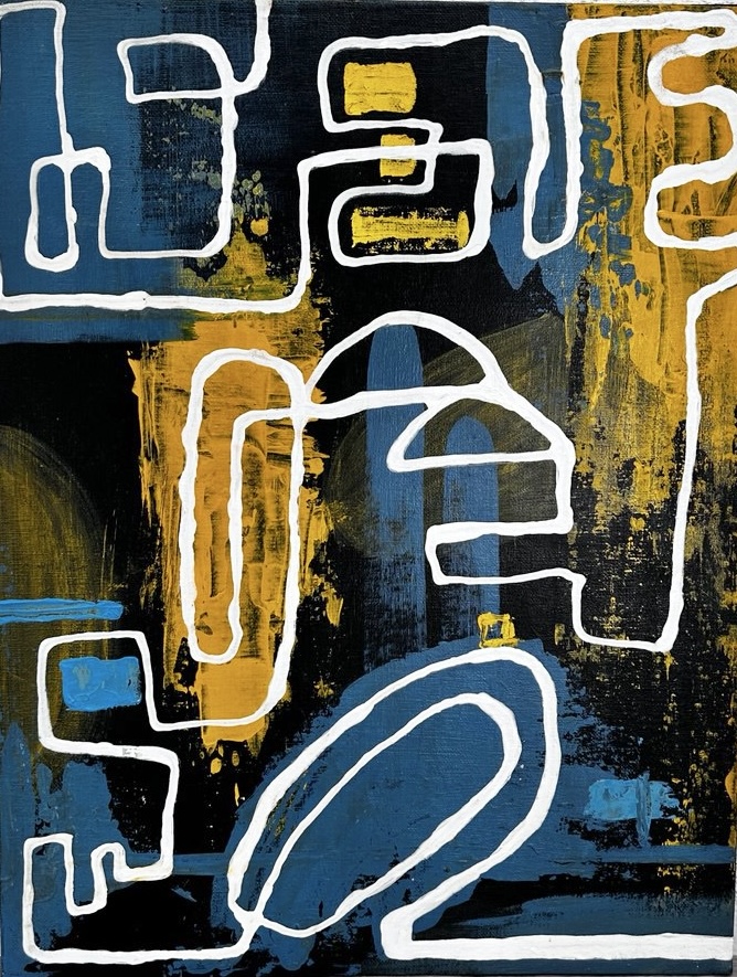 The clues lie in the titles of works such as ‘Broken Dreams/Unattainable’ and ‘Power of Shadows’. She is trying to show us what lies beneath the surface of all of us, the pain, the struggles, the recovery that we all go through in life. It’s not always visible, but it’s still there beneath the surface, and just as with her paintings, the story can’t be seen by simply skimming the surface but only by spending time with these works. Seeing where the marks, colours and textures take us and speak to us, telling us more about our own struggles than about the artist’s journey that inspired them.