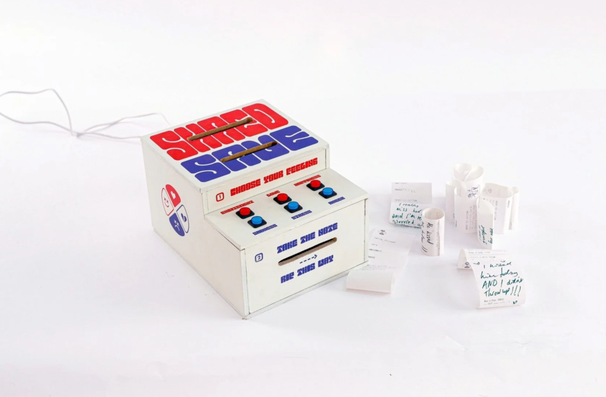 Medina Mammadkhanova takes this idea of sharing our emotions to an interactive level. Her installation ‘Emotional Processor’ asks each participant to select an emotion, receive a printed question, write down their emotion and then either keep the note or shred it in a moment of catharsis.
