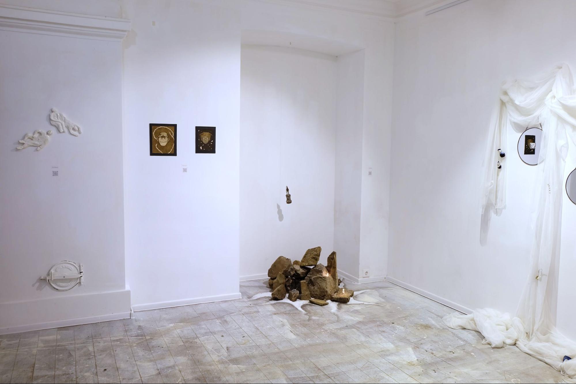Olya Eliseeva’s work features kinetic elements, including a swinging lantern above a sculptural installation, which reminds me of religious ceremonies. She also incorporates performance into her practice, using her own body as part of the work, much like artists such as Ana Mendieta did, but Eliseeva’s work has a more tranquil air. She isn’t instructing the viewer how to feel, but instead allowing them to find their own interpretation of the piece.