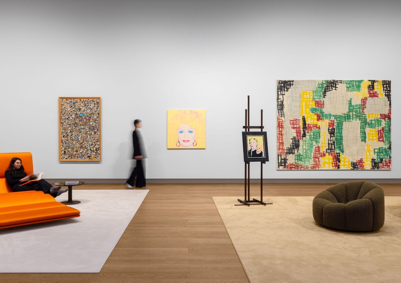 Structured around a series of sculptural furniture pieces, the presentation creates a setting for works by artists including Pablo Picasso, Louise Bourgeois, Jean Arp, Lucio Fontana and Andy Warhol, alongside contemporary figures such as Rashid Johnson, Henry Taylor and Paul McCarthy. By situating these works within a carefully staged interior, the exhibition spotlights the relationship between display and environment.