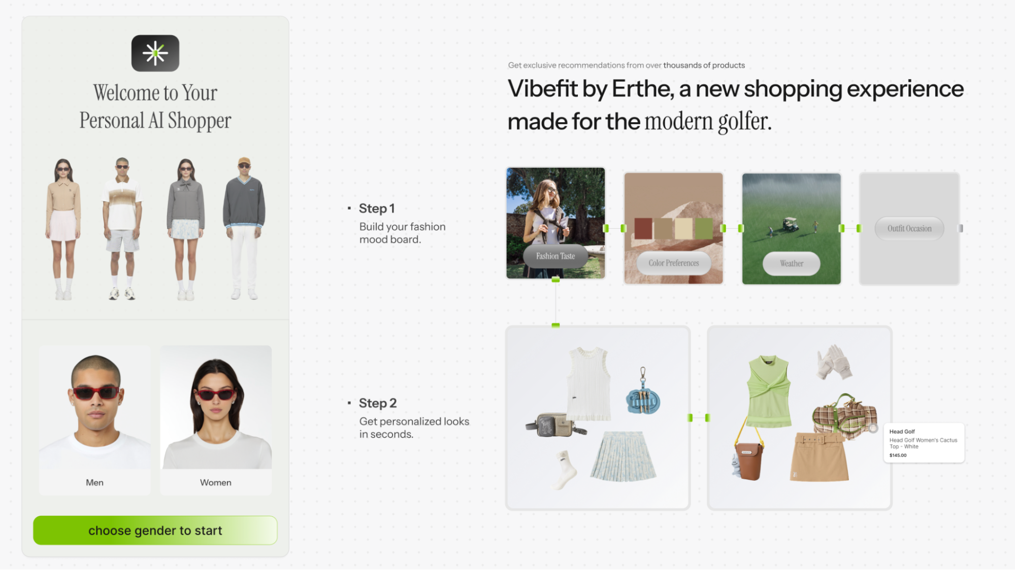 Here’s how it works: Customers answer a short series of visual questions about their preferences—color palette, fit, pattern, weather, and activity level. Each answer generates a visual card, forming a personalized moodboard in real-time. The system then analyzes these choices, considering factors like climate and occasion, to recommend full outfit combinations from Erthe’s curated inventory. It makes shopping easier and much faster.