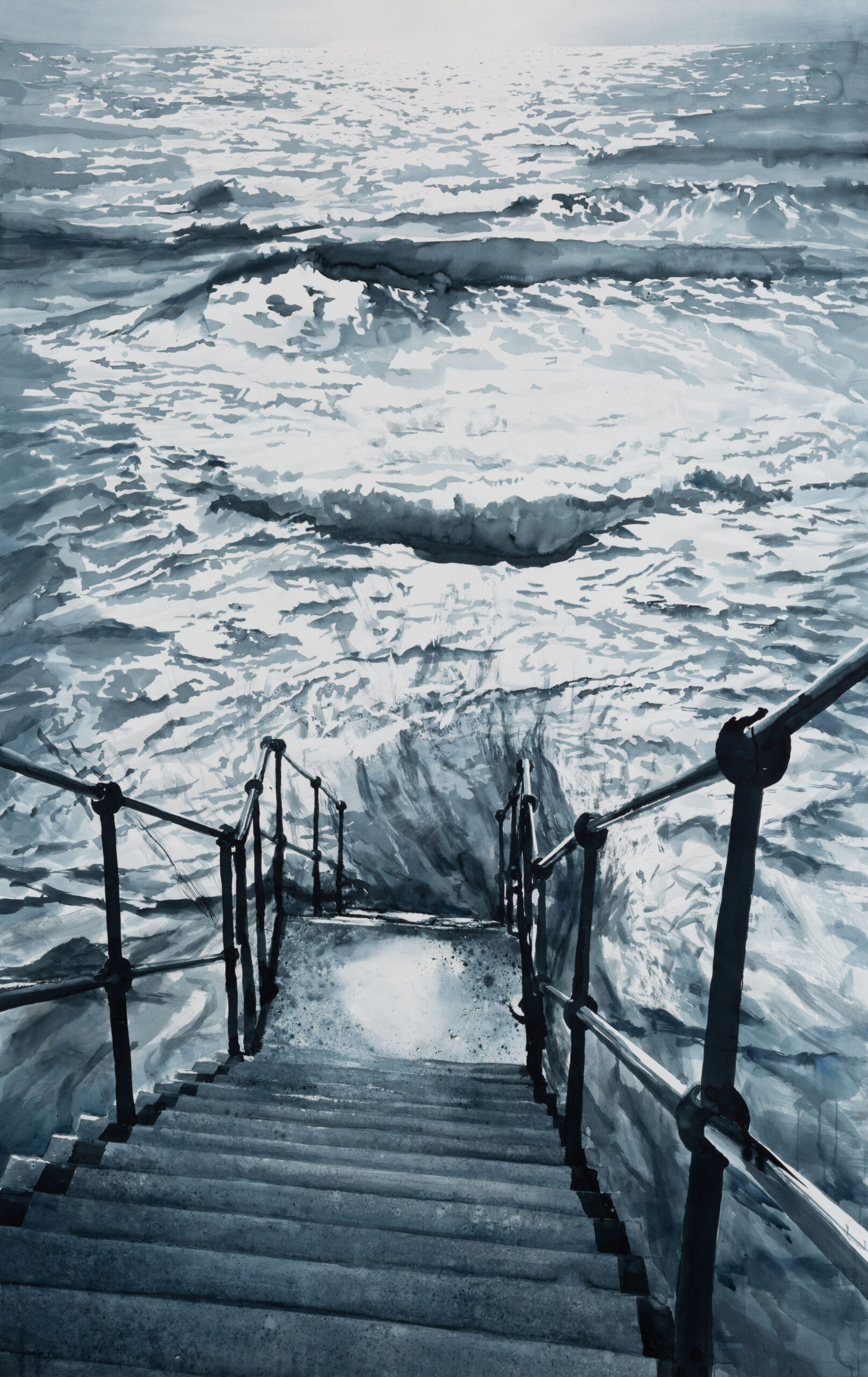 I’m unsure whether I make “activist” work – primarily I am responding to the wonder and beauty of the planet. I think when you are confronted with a single piece of my work, you could read it as an iceberg, a toppling cliff or a breaking wave. But I am compelled to represent the changes I am witnessing and by juxtaposing these in the gallery I want to set up a narrative for the viewer to communicate the precarious state of ice sheets and glaciers across the globe and the profound effect the effects of warming is having on flooding and sea level rise. As an artist, I feel working from landscape is very relevant. We are living through a period of rapid change and with the many impacts of human induced climate warming, I am committed to communicating that.