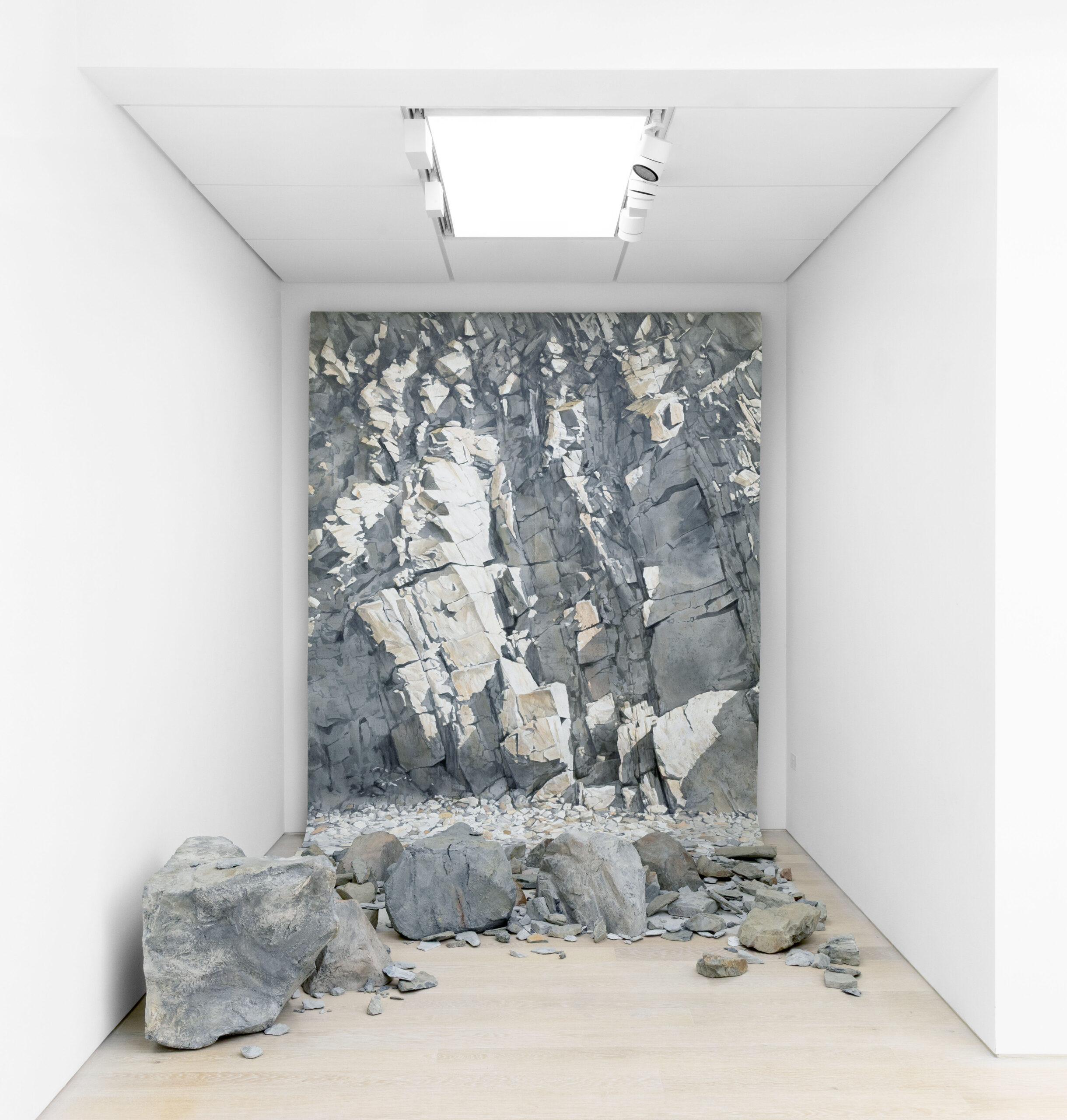 Installation view of Rock Fall, Bideford Bay, 2025, in Emma Stibbon: Melting Ice | Rising Tides at Cristea Roberts Gallery, London, 2025. Courtesy Cristea Roberts Gallery, London. Photo: Sam Roberts.
