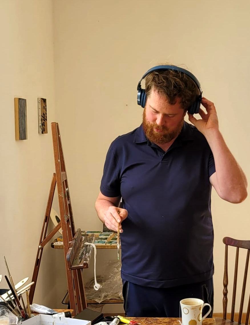 Brandon Hendrick was born in New York and studied painting at Virginia Commonwealth University before earning his MFA at Glasgow School of Art in 2021. His work has appeared throughout the United States, the UK, Turkey, France, and Bulgaria, and has been included in various publications including Epicenter NYC, Akşam, and beloved The Scotsman. Hendrick’s practice uses non-conventional surfaces to paint on – most notably cigarette packs – transmuting the disposability of the object into a physical tension that prevents the act of disposability. The cigarette pack paintings (which began in Sofia in Bulgaria) have expanded to other locations and most recently in Marnay-sur-Seine, France in a residency. The health warnings that are printed on the sides of the packs remain visible along with the textures and creases of the object itself, revealing guises of questions about value, habit, and memory that literally come into the work itself.